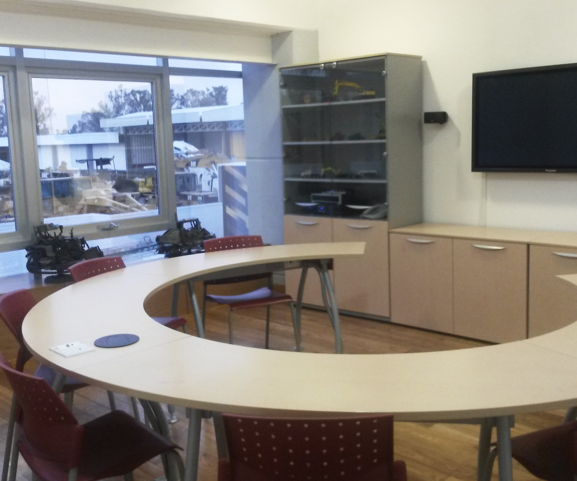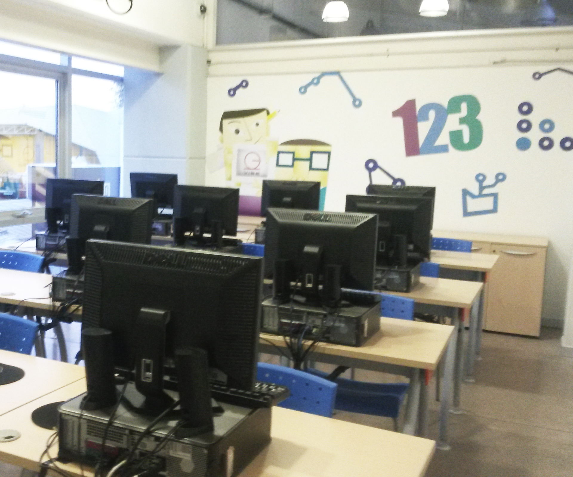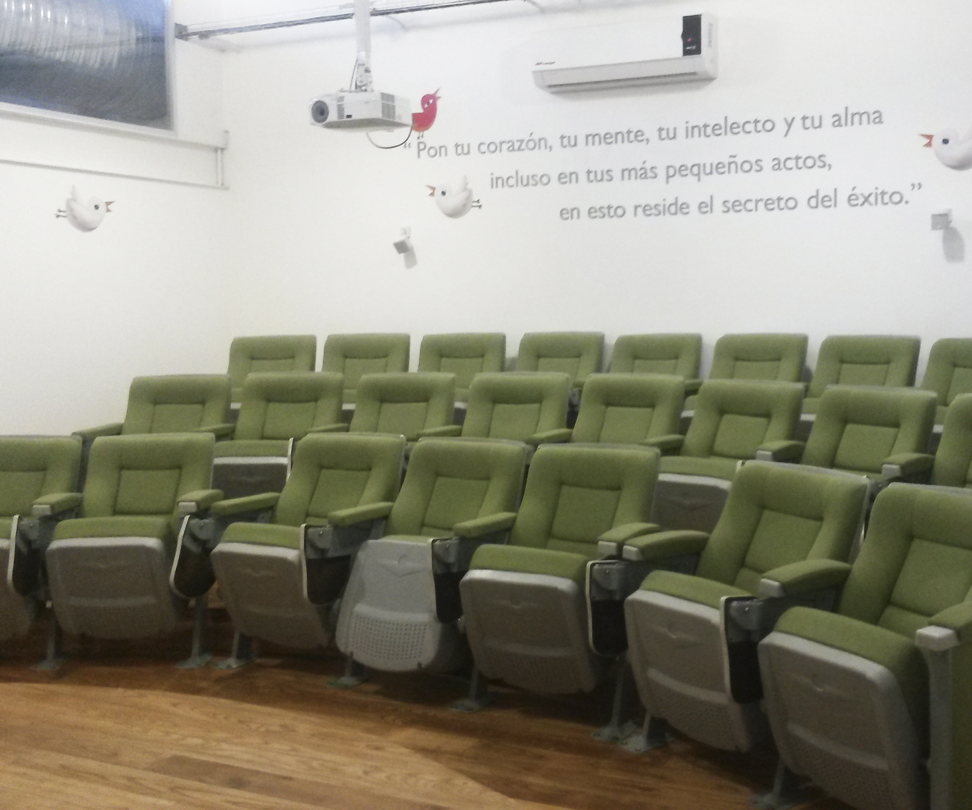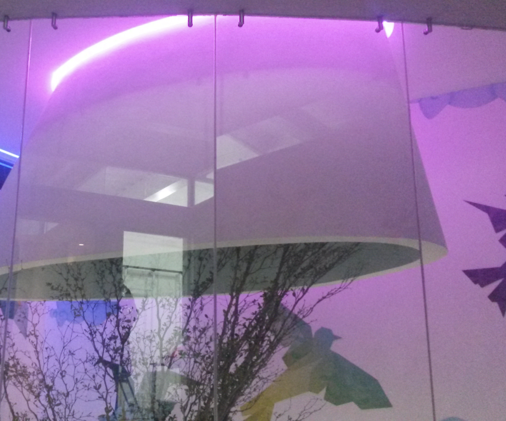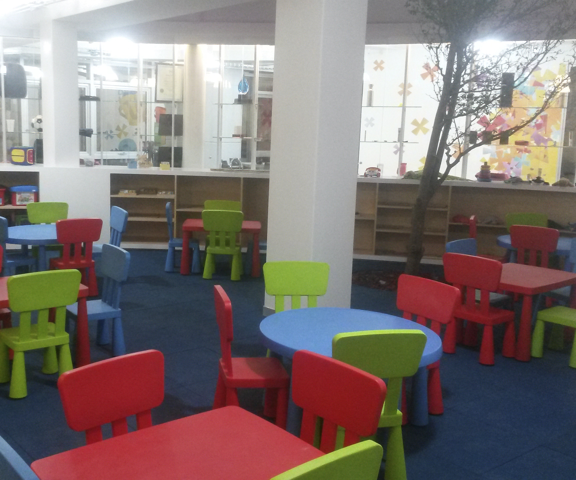 Generando como eje central el desarrollo integral de la comunidad VISE, la recepción y guardería llevan un elemento curvo y acristalado en una doble altura, permitiendo diferentes sensaciones de los espacios a través del juego de la iluminación natural y luz de colores que iluminan los espacio de forma indirecta.
